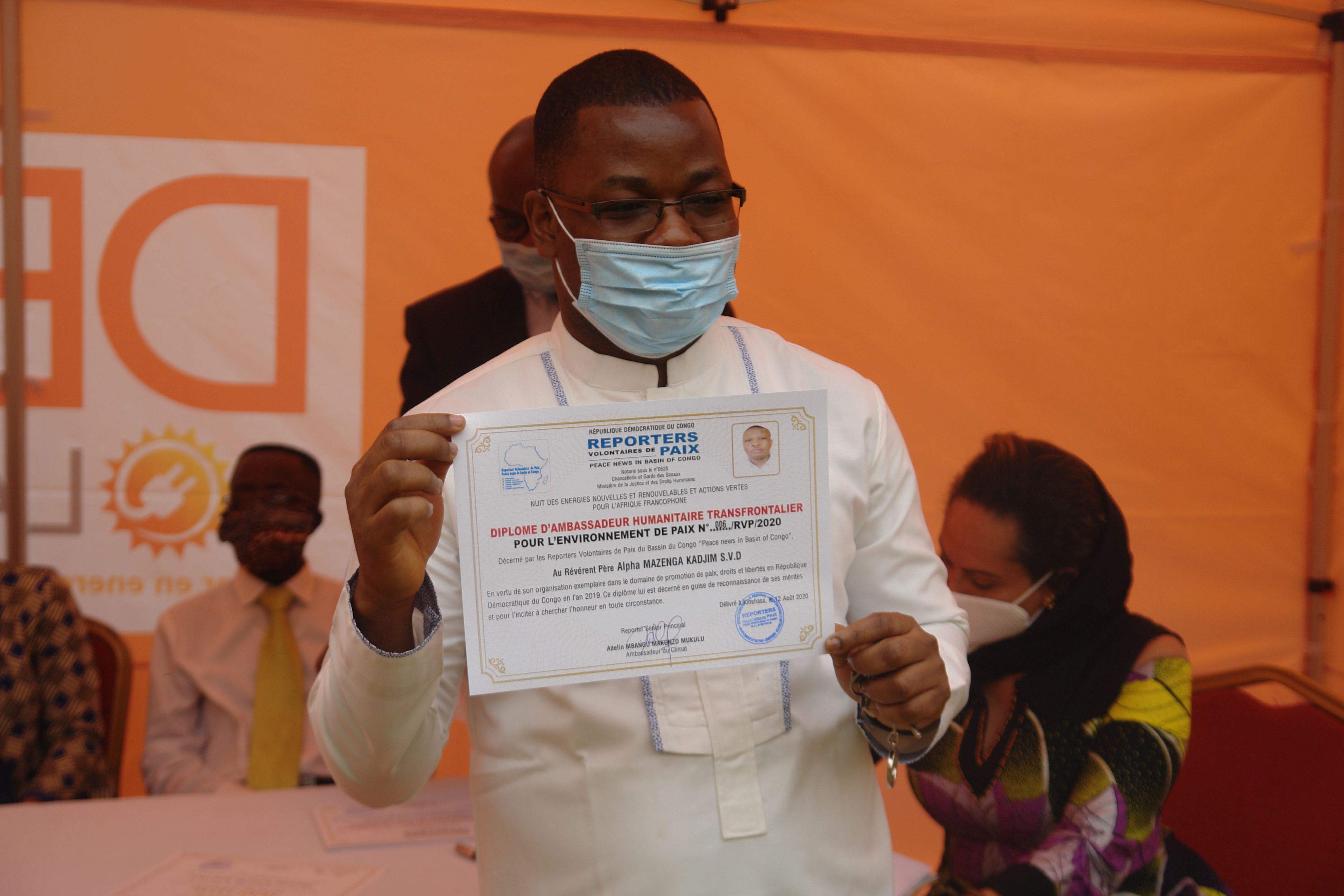 Le mercredi 12, une conférence sur Nuit des Energies Nouvelles Renouvelables et actions Vertes pour l’Afrique Francophone s’est tenue au Centre Bethanie de la Gombe. Elle s’est articulée en trois sous-thèmes, à savoir: Etat de lieux des Energies Nouvelles et Renouvelables en RDC (par prof. Joe Ntumba); l’Influence de environnement sur la santé-cas de covid-19 (par Dosithé Adelin Mbusu Ngamini, expert en environnement); Energies Renouvelables, facteur de développement communautaire (par Ir. Idris Mufuta de INPP) sous la modération de Claude Buse (expert Monusco). Le diplôme a été reçu par le père Emile, le père Alpha étant absent de Kinshasa. Bravo!