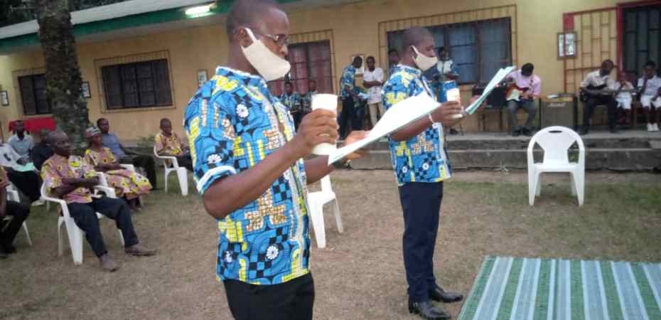 La célébration de l’Assomption de la Très Sainte Vierge Marie a été associée à l’émission des premiers vœux de nos deux novices Christian Tanzey et Stanislas Kitalay au Noviciat SVD à Bandundu-Ville. En effet, le Père Provincial Alpha Mazenga a présidé à la messe en plein air pour observer les gestes barrière de stricte observance en cette période de la pandémie au covid-19. Félicitations, chers jeunes confrères!